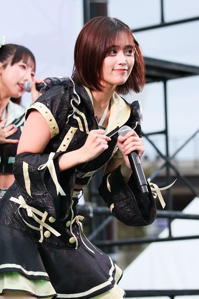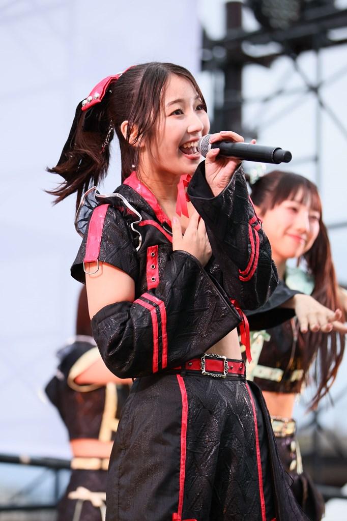 続いて10/1(水)にリリースされたばかりの新曲「Sugar Magic」を披露。ポップで乗りやすいメロディーに可愛くて甘い歌詞が乗った新曲。これからのマジパンのライブに欠かせない1曲になること間違いなしの1曲だ。沖口優奈の煽りからタオル曲「ぱーりないと!!」を披露、野外ライブでは圧巻の「ぱーりないと!!」だが、この日も船橋競馬場中をタオル旋風の渦に巻き込んだ。