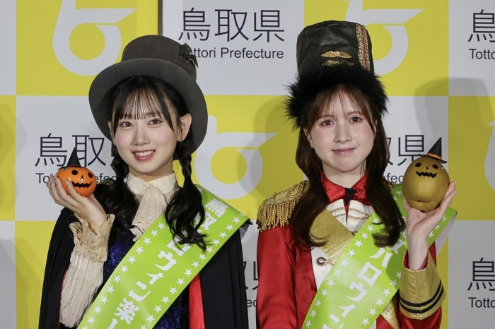 10月22日(水)には、ハロウィンの聖地化を目指す本県の取組や、「鳥取砂丘ハロウィンパーティー」の開催を全国に発信していくために、AKB48のメンバーで鳥取県出身の徳永羚海(とくなが れみ)さん、大阪府出身の永野 芹佳(ながの せりか)さんを「鳥取ハロウィン楽しみ大使」に委嘱し、就任発表会を実施いたしました。