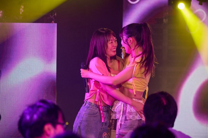 青柳は「今日は正直、ほんとにみんな来てくれるのかな? 大丈夫かな?って不安に思ってたんですけど、こんなにたくさんのお客さんで、みんな来てくれてありがとう! でもこれは私だけの力じゃないし、入ってくれた4人のおかげでしかないんですよ。それに、ファンのみなさんが「今のアプガ(仮)もいいよ」ってSNSで言ってくれてるのをたくさん見ました。だから、ここにいる全員で今日のライブを作ったんだなって気がしてます。アイドルってほんとにみんながいないと成立しないんだな、みなさんひとりひとりのことがとっても大切だなって感じました。これから一緒に宇宙まで駆け抜けていきましょう!」と思いの丈を語った。