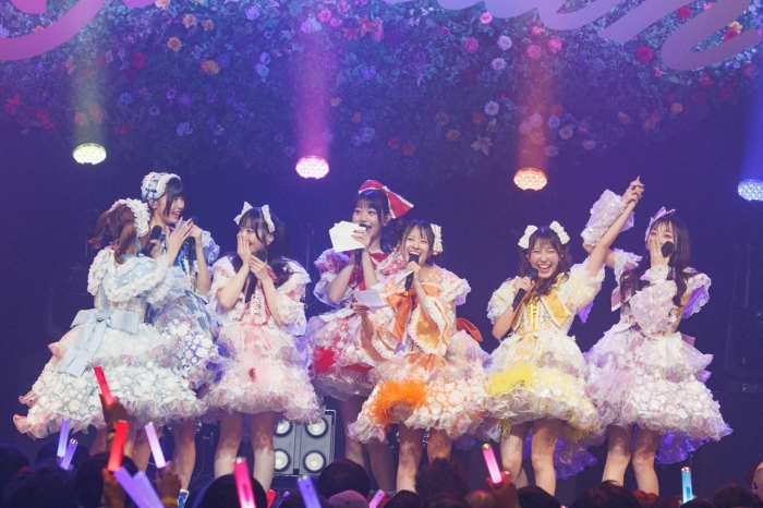 今回のツアーのために用意された、蝶や花のモチーフが散りばめられ、かわいらしくきらびやかな衣装で登場したSWEET STEADYのメンバーたち。人気曲「ぐっじょぶ!」で観客のハートをいきなり掴むと、ファンの間で話題のメンバー紹介曲「すいすてたいむ」をロングバージョンでパフォーマンスし、コール&レスポンスで会場を大いに盛り上げる。さらに、11月4日(火)より配信開始された新曲「カワイイコレクション」を初披露し、全17曲のかわいくも華やかなパフォーマンスで魅了した。