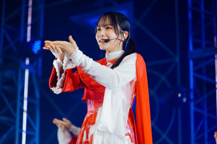 「Overture」に導かれるように、白い衣装を着用したメンバー7人がステージに登場すると、ライブは「Alter ego」から勢いよくスタート。センターの山川宇衣を中心に、軽快なステップを交えながらフレッシュなパフォーマンスを展開していく。1曲終えたところで、浅井恋乃未が稲熊と山田の休演に触れ、「2人の気持ちも背負って、最後まで全力で走り抜けていきます!」と力強く宣言。また、佐藤も涙ぐみながら「千秋楽に曲数を減らすことになって悔しい思いもありますが、参加できる楽曲は全力でパフォーマンスするので、皆さんと最高の思い出を作れたらと思います」と思いを口にした。