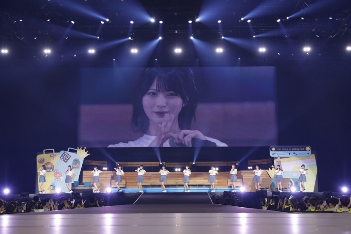 その後も先輩グループのカバーを盛り込みつつ、華やかな“空の旅”を経て南の島へ着いた≒JOY。彼女たちは『ブルーハワイレモン』などのサマーチューンを連発して会場をさわやかな空気で満たし、ラストスパートでは『体育館ディスコ』『初恋シンデレラ』などの鉄板曲を畳みかけた。そして小澤が「メンバーみんなで試行錯誤して、挑戦できたツアーだったんじゃないかなと思います!」とツアーを振り返り、今後の活動への意気込みを述べたあとは『ネバギバ!生きろ』のパフォーマンスへ。ファンに宛てたメッセージが映し出されるスクリーンを背に、メンバーは晴れやかな歌声を響かせた。