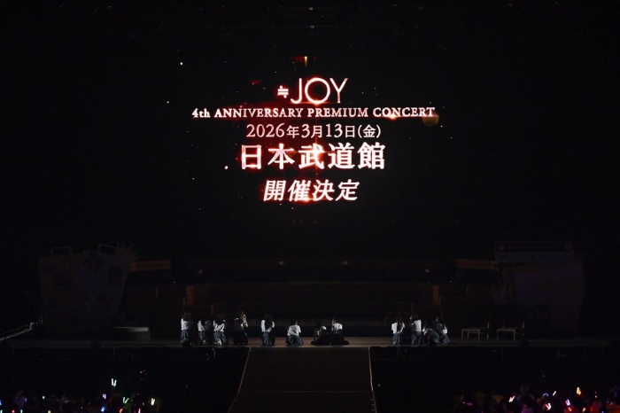 観客を煽りつつ、アンコールでも熱気あふれるパフォーマンスを続行した≒JOY。彼女たちが最後の曲へ移ろうとすると、サプライズで特報映像がスクリーンに映し出され、2026年3月13日に東京都・日本武道館で≒JOY 4周年コンサート「≒JOY 4th ANNIVERSARY PREMIUM CONCERT」が行われることが発表された。かねてから日本武道館のステージに立つことを目標に掲げていたメンバーは、大粒の涙を流しながら歓喜。小澤は「ここからが勝負、満員の日本武道館のステージに立つのが目標なので、がんばっていきたいと思います!」と力強い言葉を述べた。そして江角が「4周年、一緒に駆け抜けてくれますか?」と涙ながらに呼びかけたのち、彼女たちは『きっと、青い』を歌唱。夢に向かって走り続ける仲間との絆を描いた歌詞を情感たっぷりに歌に乗せた。さらに≒JOYはダブルアンコールとして『いま、月は満ちる』を再び披露し、≒JOY 全国ツアー2025「Our moon is getting full」を大団円へ導いた。