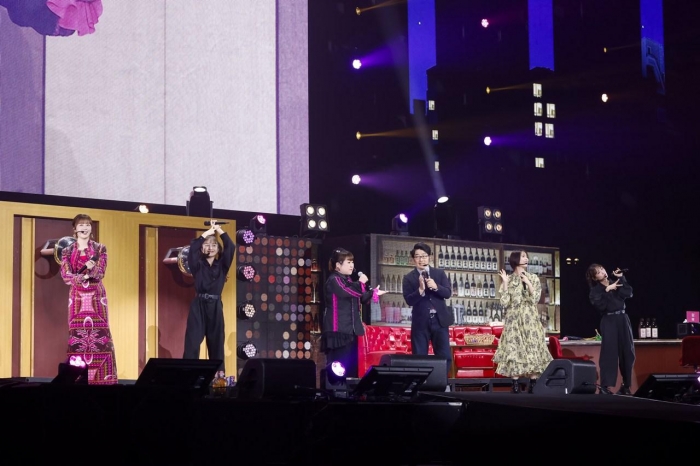 ここで、進行を吉田尚記アナウンサーにバトンタッチ。「本日のテーマは“光”。キラキラ輝くネオン街を舞台にした企画を実施します!」という案内のもとスタートしたのは、あーりんがママ・しおりんがチーママを務める『バレイベ』恒例の「スナック愛輪(あーりん)」。常連客役のドランクドラゴン・鈴木拓は、今回ももちろん登場。鈴木は昨年末に行われた「第9回 ももいろ歌合戦」の総合司会という大役を務めたときのエピソードで盛り上がった。