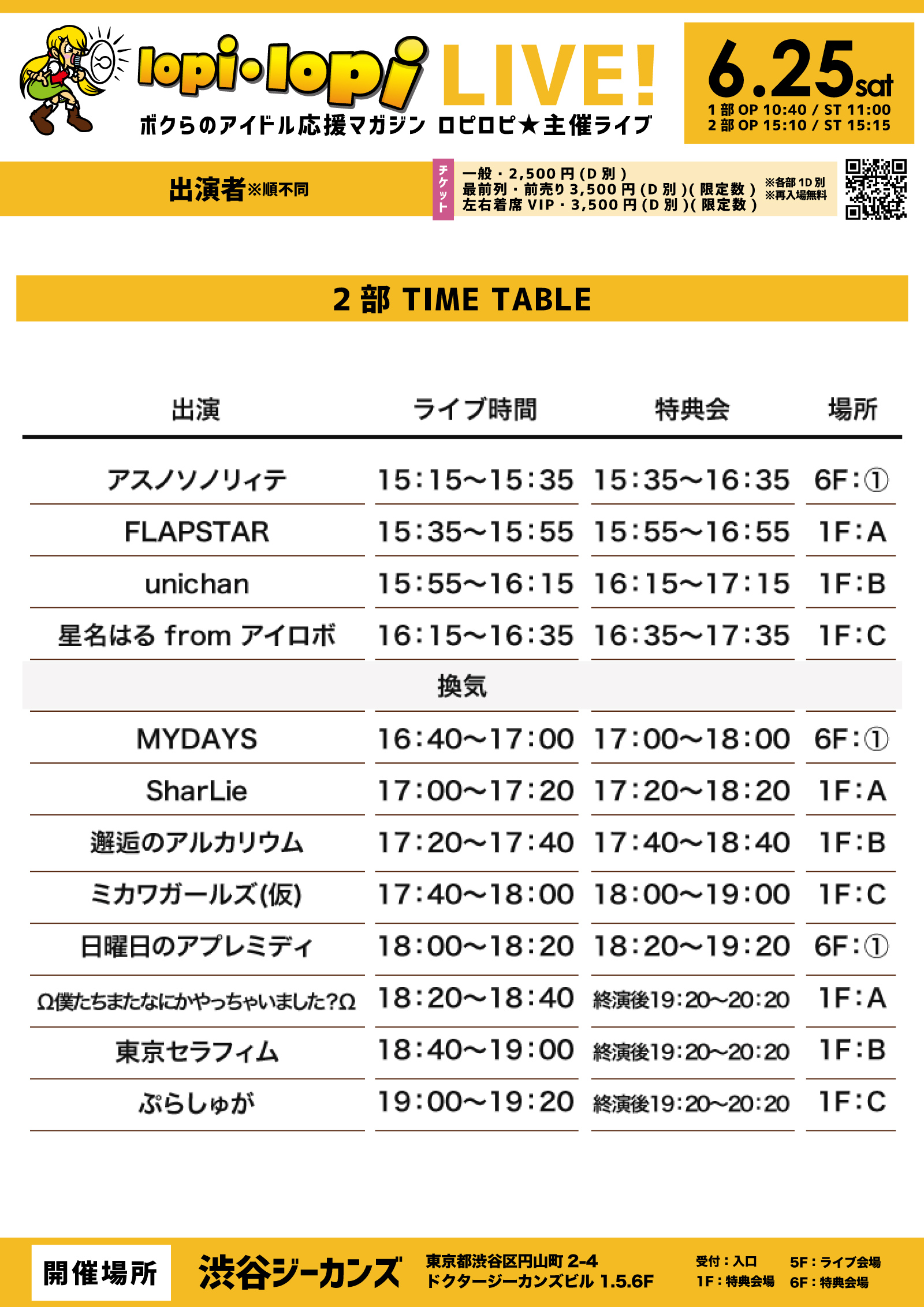 ※出演者、出演時間、特典会時間決まり次第お知らせいたします。